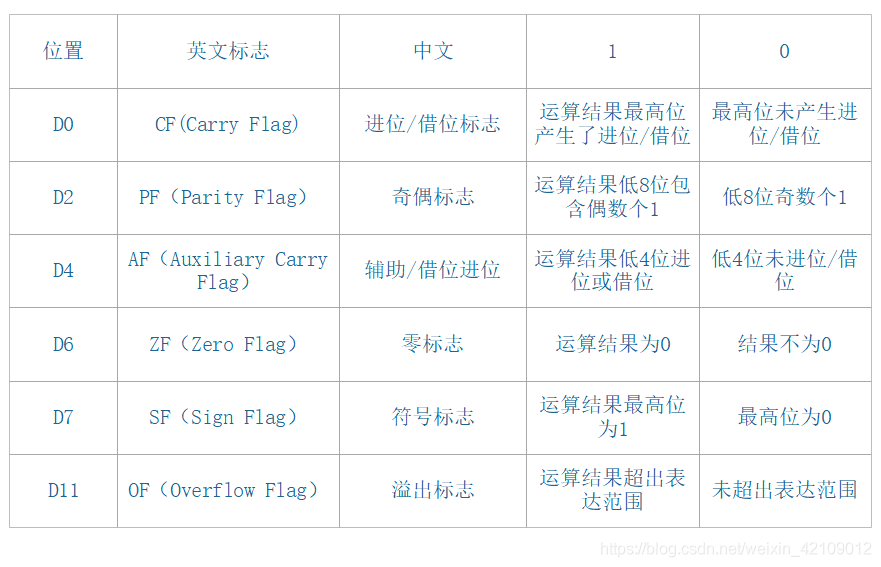 | CF(Carry FLag) 进位标志(第 0 位) |