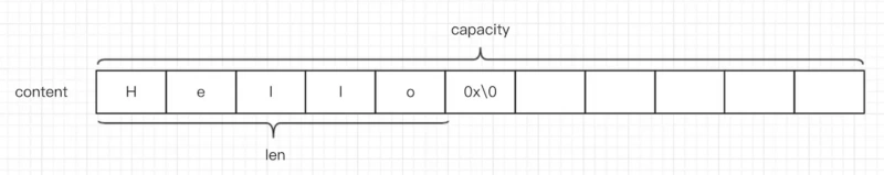 上图就是字符串的基本结构,其中content里面保存的是字符串内容,0x\0作为结束字符不会被计算len中。