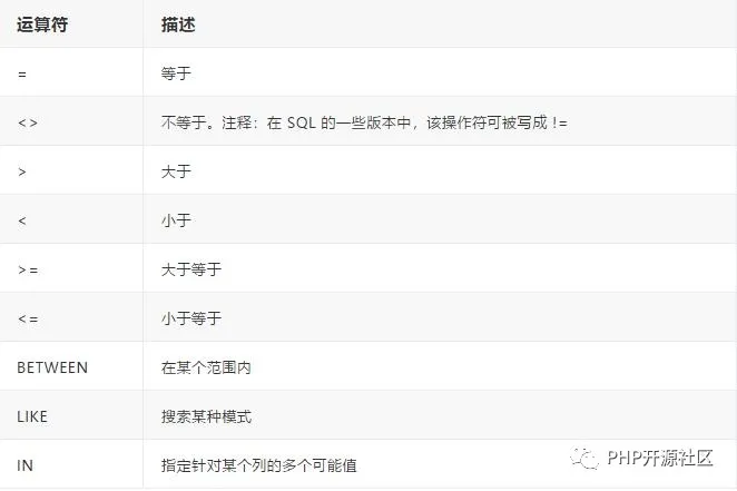- WHERE 后跟一个返回 true 或 false 的条件。