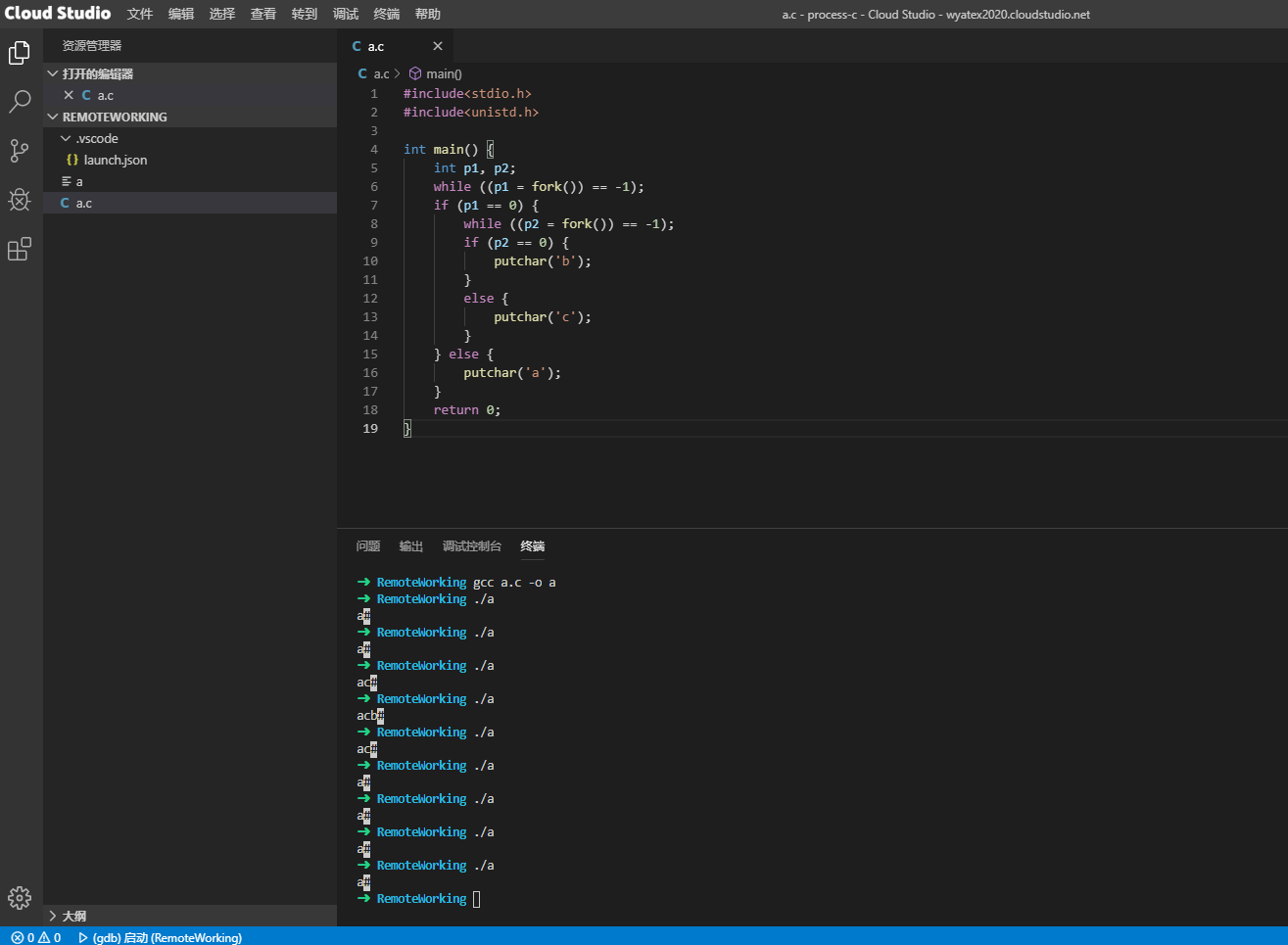 这时候我们开始编译,比如我的源码文件是 a.c 那么我们使用gcc a.c,就可以编译出一个 a.out 的可执行文件,当然你也可以加个参数,控制生成的可执行文件的名称,比如:gcc a.c -o a就可以编译成一个叫 a 的可执行文件
