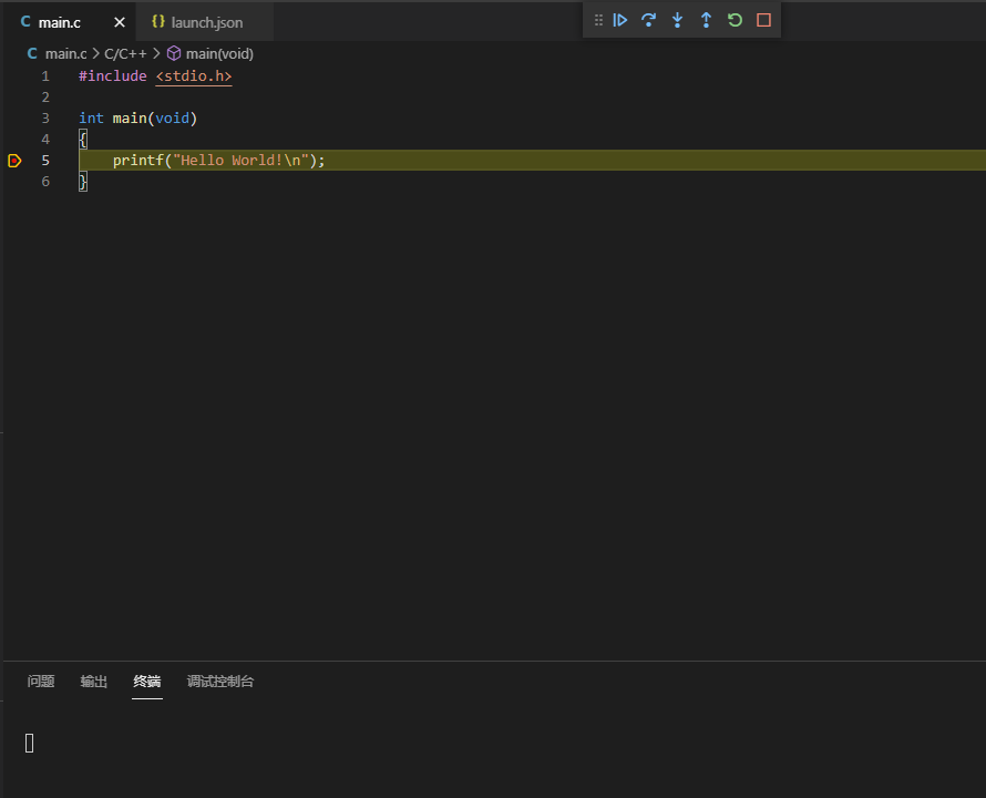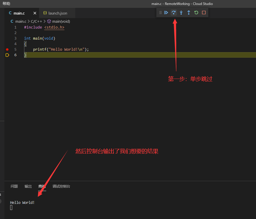 - 继续:程序继续运行下去,直到下一个断点或者程序结束