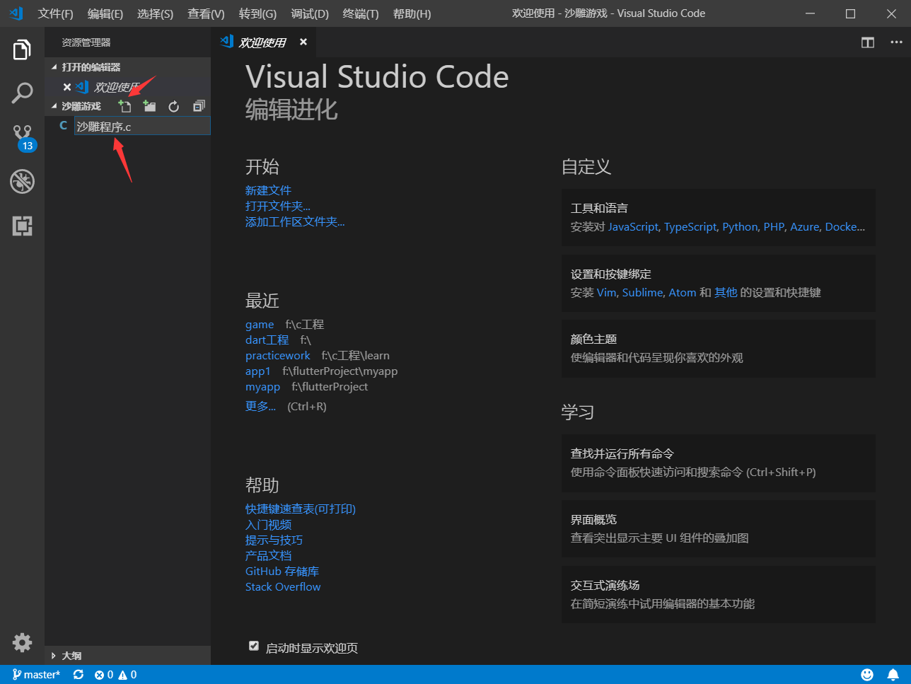 - 然后新建一个文件,沙雕程序.c