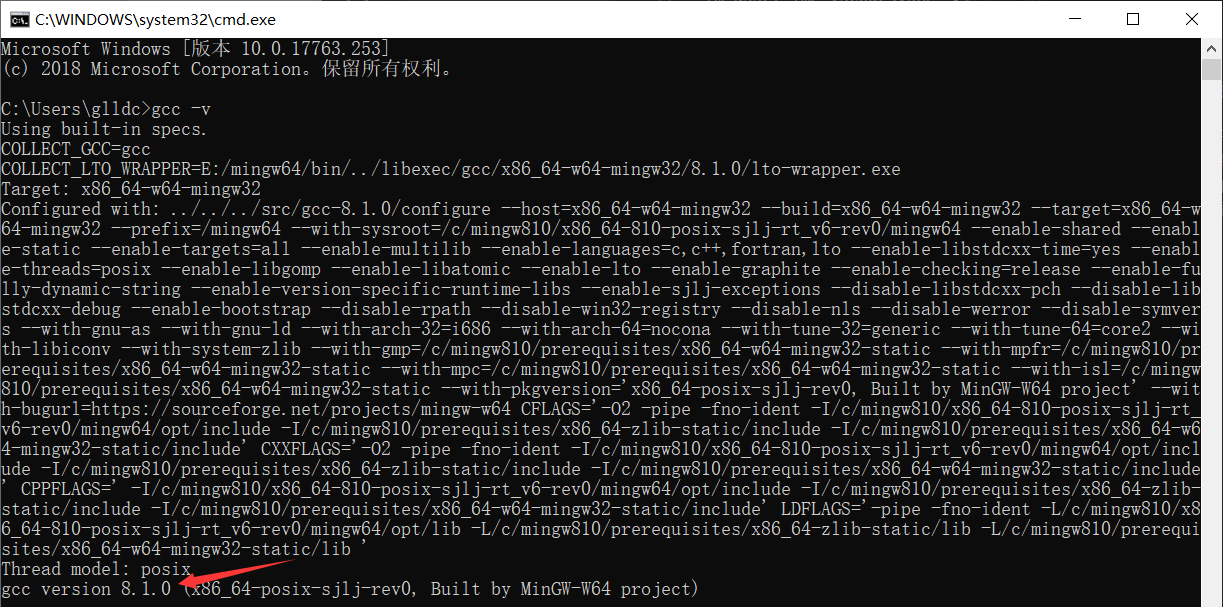 到这里我们打开cmd(WIN键+R,输入cmd,确认打开),输入gcc -v