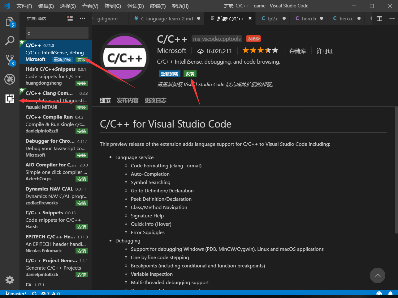 最后一个步骤,安装C/C++的插件,步骤如下