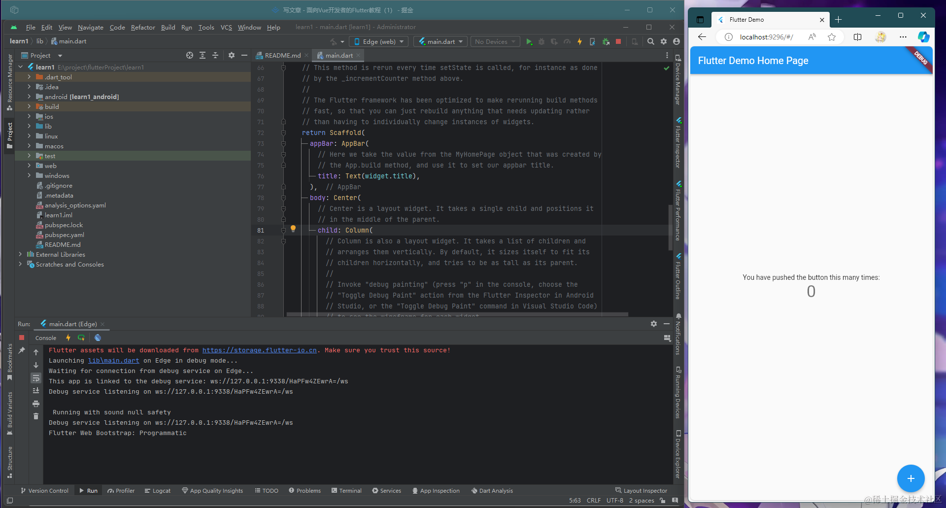 不出意外的话,咱们的Flutter项目就跑起来辣!是不是很简单捏。